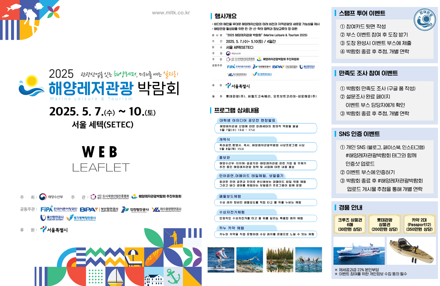 | 프로그램 | 시상 프로그램 2025 해양레저관광 대상 2025 홍보마케팅 대상 2025 해양레저관광 대학생 아이디어 공모전 |